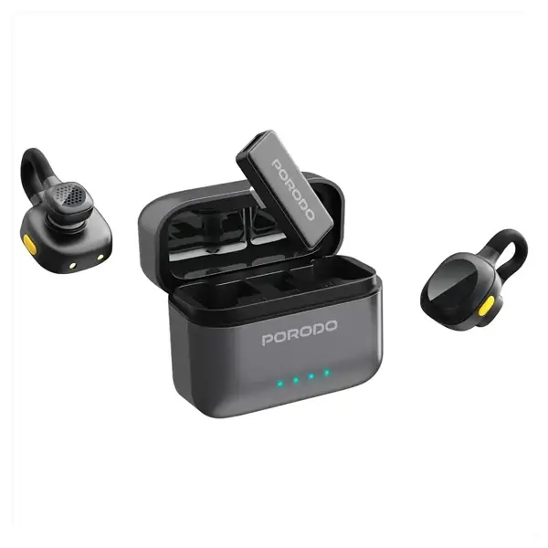 Micro cravate sans fil Orion Lavalier Porodo – 5h d’autonomie – Connecteur Type-C – Lightning – Réduction de bruit – Distance de transmission 15m à 20m – PDLAMPHF75BK