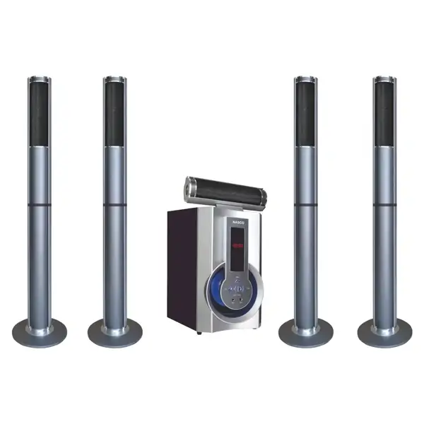 Home cinéma 5.1CH avec télécommande Nasco – 45W – 5 haut-parleurs + 1 caisson de basse – Bluetooth – FM Radio – USB – NAS-HT5.1-N918