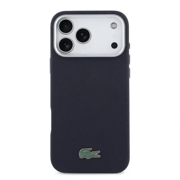 Coque de téléphone Lacoste pour iPhone 17 Pro Max – MagSafe – Étui en cuir enveloppant avec motif petit piqué – Protection des rayures et autres dommages – Navy – LCFCMP17XPLAV
