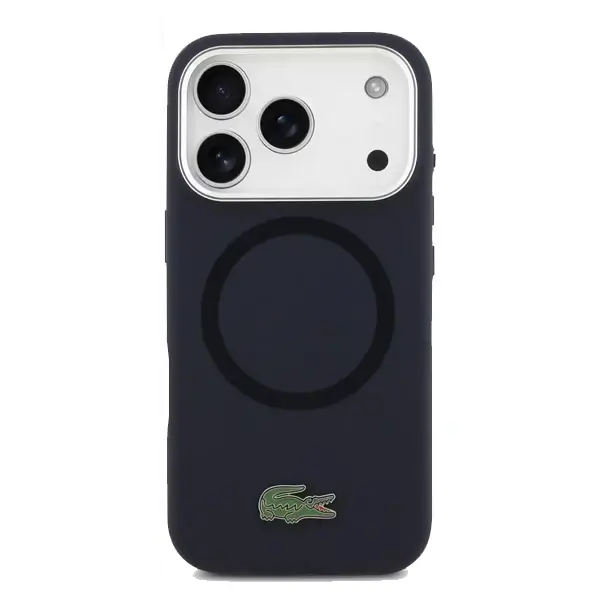 Coque de téléphone en silicone avec logo métallique Lacoste pour iPhone 17 Pro Max – MagSafe – Protection contre les chutes et autres dommages – Navy – LCHMP17XSLAV