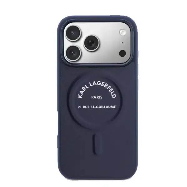 Coque de téléphone en PU avec boutons logo Karl RSG Karl Lagerfeld pour iPhone 17 Pro – MagSafe – Protection des rayures et autres dommages – Navy – KLOHMP17XPSKRSGEB