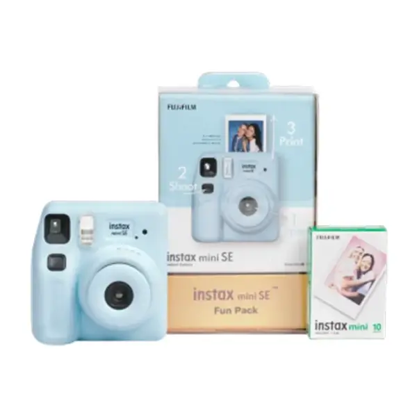 Appareil photo instantané Fujifilm Instax Mini SE Fun Pack – Appareil photo + un pack de 10 feuilles intégré – Bleu