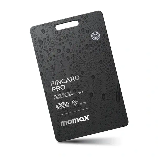 Tracker connecté Momax PinCard Pro – Rechargeable – Capacité de la batterie 100 mAh – IP68 – Compatibilité des appareils Identifiant Apple – Liée à Find My App – BR9D
