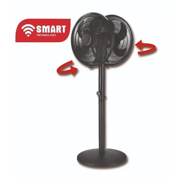 Ventilateur sur pied double têtes avec télécommande Smart Technology – 16″ – 3 vitesses – 5 hélices – 120W – Double tête avec rotation à 360° – STV-D1655TRC