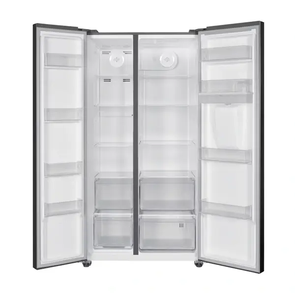 Réfrigérateur américain double portes TCL – 433L – 6 étagers et 4 tiroirs – Distributeur d’eau – Économique -R600A – P575SBGWD