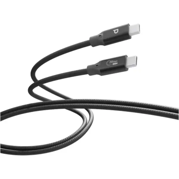 Câble de charge rapide et transfert de données Powerology USB4 Thunderbolt 40G – 240W – 2M – Câble tressé en nylon – Prise en charge de sortie vidéo 8K – Gris foncé – PCAB029GY