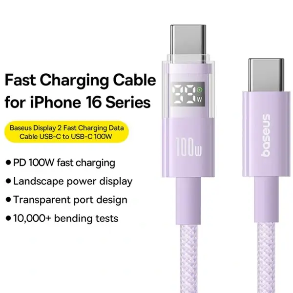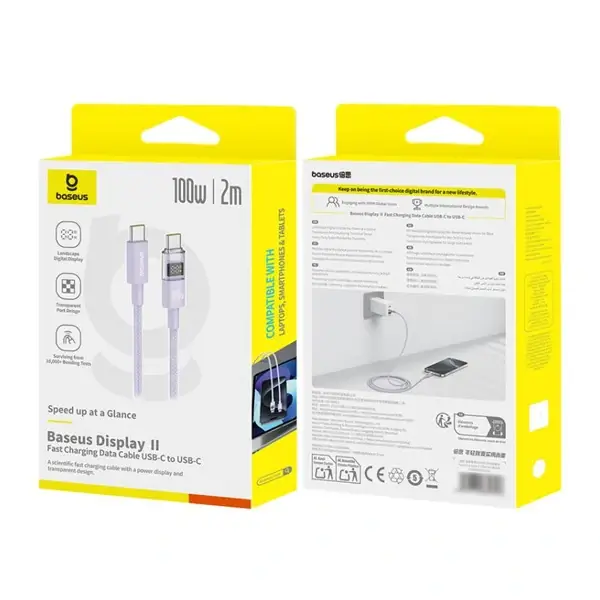 Câble de charge rapide et de transfert de données Baseus Display II – 100W – 1m – Type-C vers Type-C – Galaxy bleu -P10382702311-00