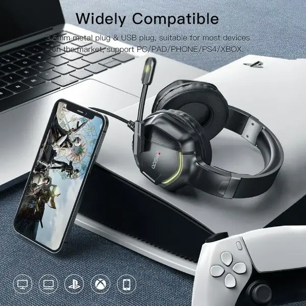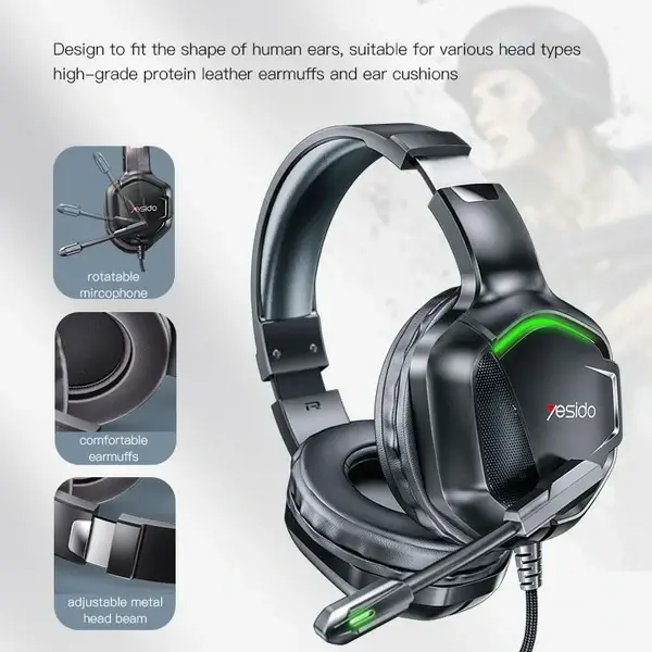 Casque de Jeu Stéréo – Microphone HD – lumières RGB – Yesido EK01