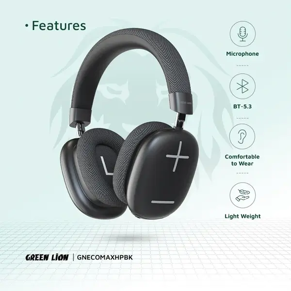 Casque EchoMax avec microphone intégré Green Lion – 48H d’autonomie – BT 5.3 – Portée maximale 10m – GNECOMAXHPBK