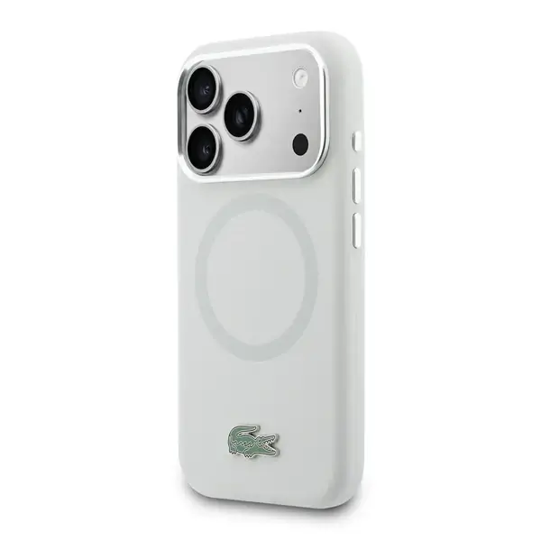 Coque de téléphone en silicone avec logo métallique Lacoste pour iPhone 17 Pro Max – MagSafe – Protection contre les chutes et autres dommages - LCHMP17XSLAO