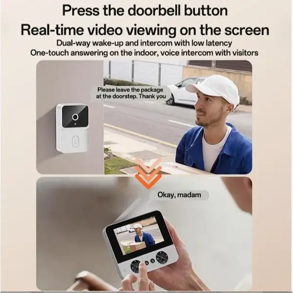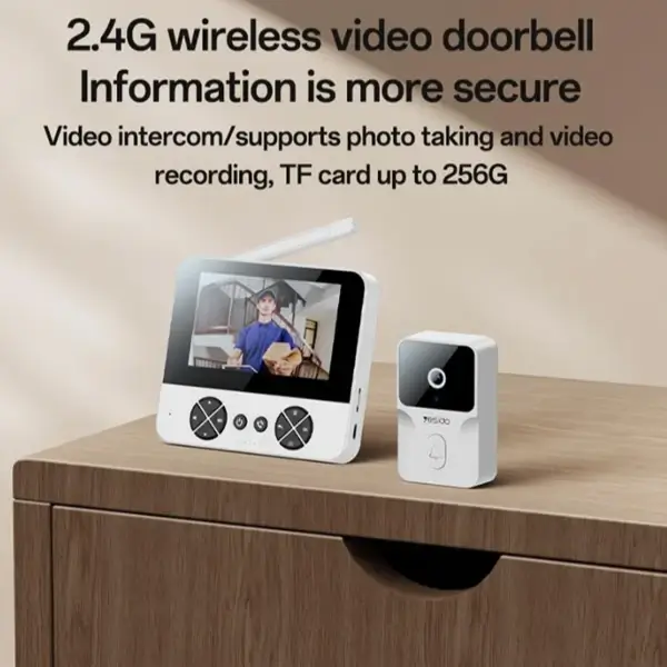 L’unité intérieure dispose de quatre sonneries à volume réglable. 19. Le volume et la luminosité sont réglables grâce aux touches de raccourci, évitant ainsi une configuration fastidieuse. 20. Antenne externe de qualité industrielle avec une portée de transmission de 300 mètres à l’air libre et de 50 mètres à l’intérieur (à travers les murs). 21. Prise en charge d’une carte TF jusqu’à 256 Go (non incluse). 22. Conception économe en énergie : l’unité extérieure a une autonomie d’environ 6 mois avec une seule charge.