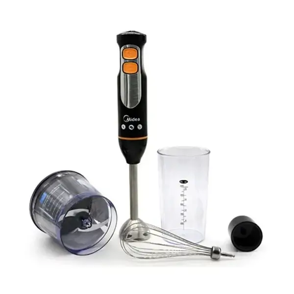 Mixeur à main avec fouet-hachoir Midea – 400W – Capacité du bécher 600ml – Capacité de soufflage du hachoir 500ml – Lame en acier inoxydable – MJ-BH4001W