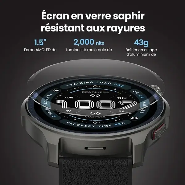 Le boîtier élégant en aluminium et l’écran en verre saphir durable de 1,5″ offrent un design haut de gamme et résistant, tandis que les deux haut-parleurs fournissent des signaux audio clairs pendant l’entraînement. Le style rencontre la fonctionnalité pour vous permettre de rester concentré et de garder le contrôle.
