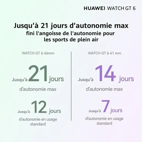 Montre connectée Huawei Watch GT6 – 46mm – Jusqu’à 21 jour d’autonomie – BT – IP68 + IP69 (50m) - Bracelet en noir - ATM-B19