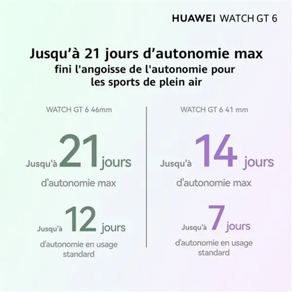 Soyez le premier à laisser votre avis sur “Montre connectée Huawei Watch GT6 – 41mm – 1,32″ – Jusqu’à 21 jours d’autonomie – BT -GPS – IP68 + IP69 (50m) – Android et IOS – bracelet en cuir blanc – KSU-B19” Annuler la réponse