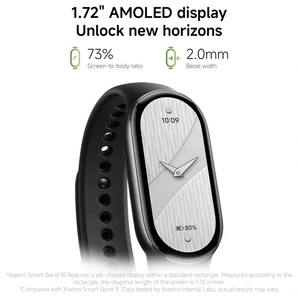 Montre connectée Xiaomi Mi Smart Band 10 – Année 2025 – Écran AMOLED 1,72″ – Autonomie 21 jours – BT 5.4 – Écran tactile – Suivi multisports – Moniteur de fréquence cardiaque – BHR07PYGL