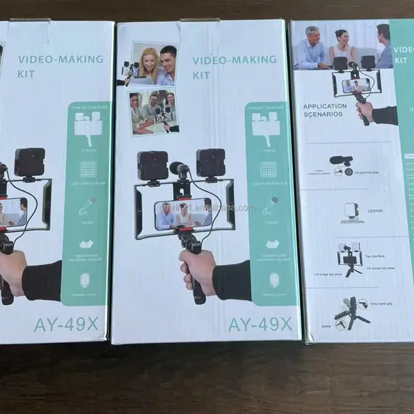Stabilisateur de téléphone avec poignée – Avec 2 lumière LED et micro – Batterie 3 piles AAA – AY-49X